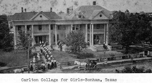 In 1867 Charles Carlton, who had established Carlton College at Kentuckytown in 1865, moved to Bonham and took over the Bonham Female Institute. By 1881 the name had been changed to Carlton College.