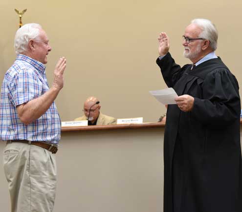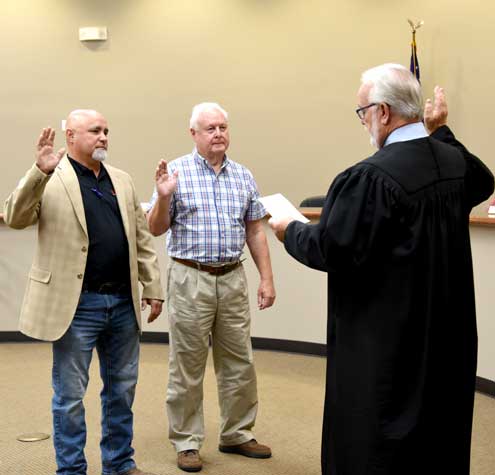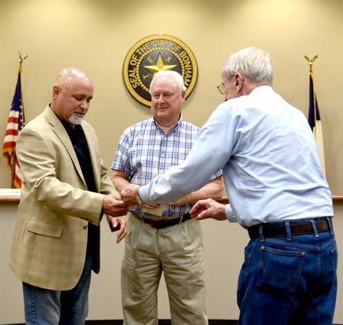 City of Bonham Municipal Court Judge John Skotnik administered the oath of office to councilmembers-elect Burnett and Quintana.