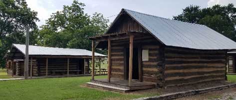 The "dog trot" is now two separate log cabins just north and east of the visitors center as shown in the above photo. Until 2004 one cabin was used to display the tools of a typical blacksmith shop circa 1900. Much of the old equipment was donated by the Doyle Chapman family who in the 1970s owned the SW corner of 3rd & Bullard Street in Dodd City. This is where James R “Jim or Pappy” Lowrey settled after moving from Sparta, TN in the 1880s.