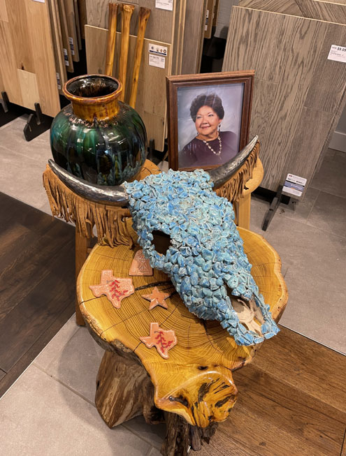 Art has been a constant theme in several generations of the Baecht family. John's mother, the late Sue Tucker, is the matriarchal artist of the family, known for producing Southwest-style ornaments at her Southwest Treasures in Santa Fe, New Mexico Christmas Store for years. Sue's cow skulls with turquoise inlays won numerous accolades.