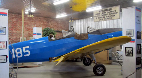 Along with the plane at the Museum are flight suits and other memorabilia, as well as photos of many of the young men who trained at Jones Field. This airplane is one of the most popular exhibits at the Museum. Come see it yourself and bring your kids and grandkids.