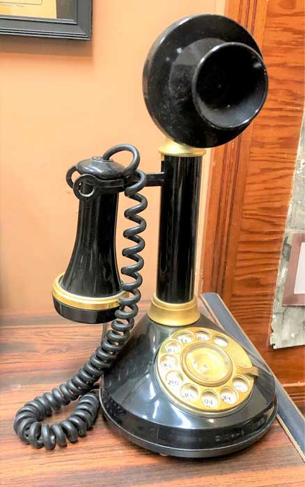 The telephones of the 1920s in Bonham were the standing black telephones with the receiver on the side. This is an example from the Museum, but those in use in Bonham would not have had a dial feature.
