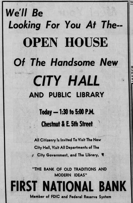 Then Library found a home in the new City Hall, at Chestnut and East 5th Street (now the Police Department) in 1962.