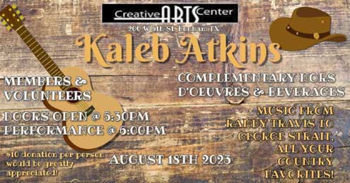 Creative Arts Center hosts Kaleb Atkins – Exclusive Member event Aug. 18