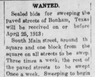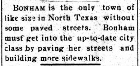 Bonham, Texas -- Bonham was behind other towns in paving its streets.