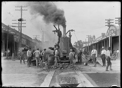 We are so fortunate to have many wonderful photos of the paving process which were taken by Erwin Smith and are available online at the website of the Amon Carter Museum. It must have been amazing to Bonham citizens to see this work taking place.