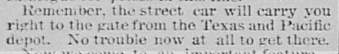 And this was the year that the streetcar track was built from the T&P Depot to Russell Heights. So the street car would carry you to the Fair.