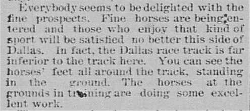 Horse racing was a big event, and the Fort Worth paper said there was heavy betting on the races. The Fort Worth paper also said that the race track in Bonham was much better than the Dallas race track.