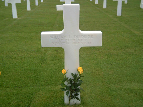 Wendy had adopted the grave of William (Bill) Diedrick. She visited his grave and placed flowers on it. The American cemetery where William is buried is near the village of Colleville-sur-Mer, in Normandy. It overlooks the beach known as "Omaha."