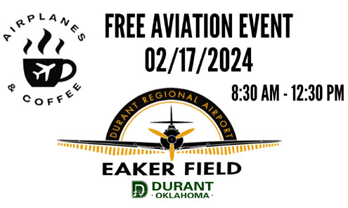 Durant, Oklahoma -- Join the 501c3 Non-Profit Organization “Airplanes and Coffee” for a FREE day of fun at the Durant Regional Airport in Durant, Oklahoma on Saturday, February 17, 2024, from 8:30 a.m. until 12:30 p.m.