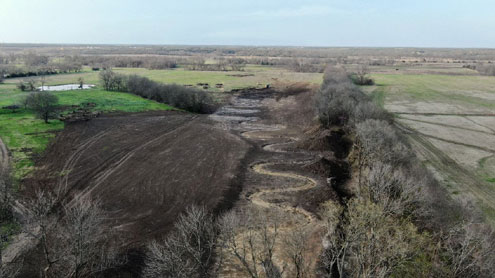 All told, the TMS team will be creating 5.7 miles of new stream, and currently have around 15 crew and subcontractor team members onsite. When finished, the mitigation will provide flood control for the North Sulphur River downstream, less erosion and new water and food resources for local wildlife. The site will be monitored for seven years after completion to confirm that the transformation’s working.