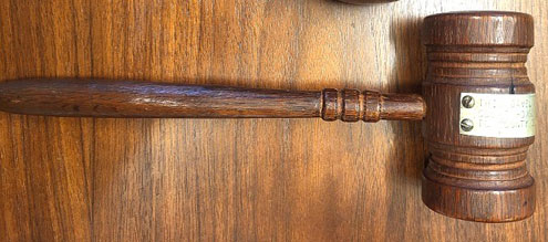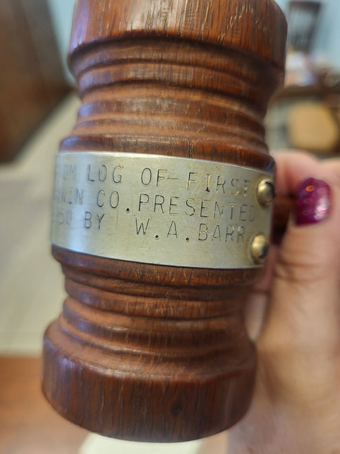 Fannin County, Texas -- On Tuesday, May 14, relatives of former Fannin County Judge Choice Moore presented the County with a gavel made from a log from the first Fannin County Courthouse, which was built at Warren near Red River in 1839, during the Republic of Texas times.