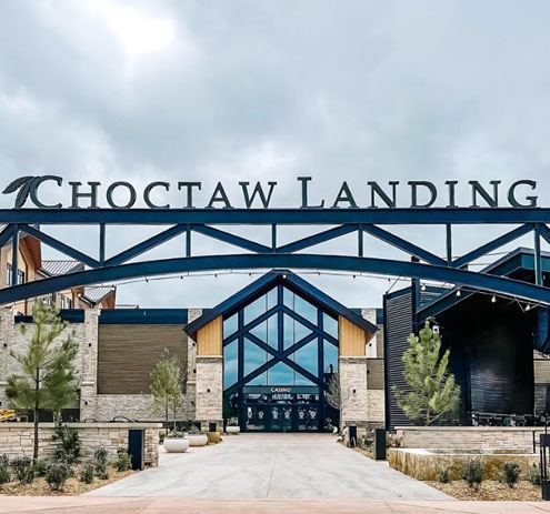 Choctaw Landing reflects the natural beauty of Hochatown and is a 100-room resort with meeting rooms, a restaurant, a pool with nine cabanas, and a casino with 600 slot machines and eight table games. The resort also has an outdoor recreation venue with an amphitheater, beer garden and food offerings. Additionally, a mercantile with gifts, groceries, deli, Starbucks, and a 24-pump fuel island is attached to the resort.