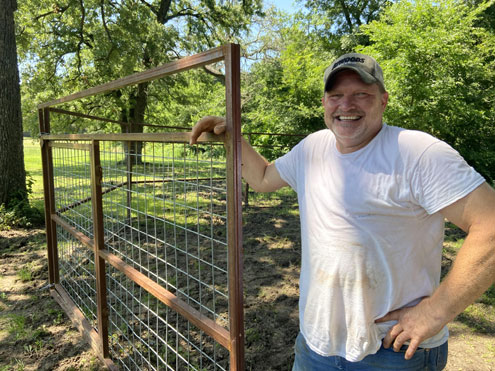 Like all savvy trappers, Steven only partially assembled the trap, he left a wide opening for the hogs to access the corn he uses as bait. He wanted them to learn where the corn was located and feel comfortable around the fencing. He then set up a live feed camera to monitor the trap a couple of nights.