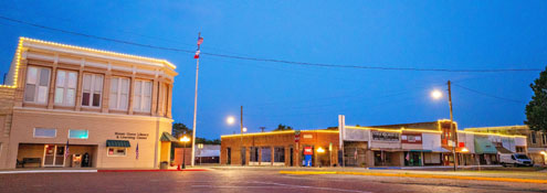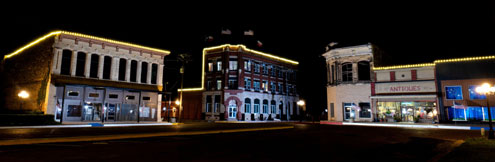 Honey Grove, Texas -- The historic Honey Grove Square is now lit every evening with lights outlining the roofs of the buildings.