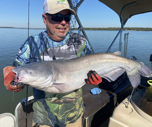 I’ve fished with Tony many times and he knows ole’ Luke is all about a fish fry. I share his love of catching these hard-fighting fish and eating those snow-white blue catfish fillets but I won’t snub my nose at a platter of tasty channel cat fillets either. We could have baited a spot with cattle range cubes or soured grain, used his Tony P’s Punch bait and undoubtedly landed our limits of channel catfish weighing 1.5 to 2 pounds but with the bigger blue catfish on a dependable bite, our choice of species was a no brainer.