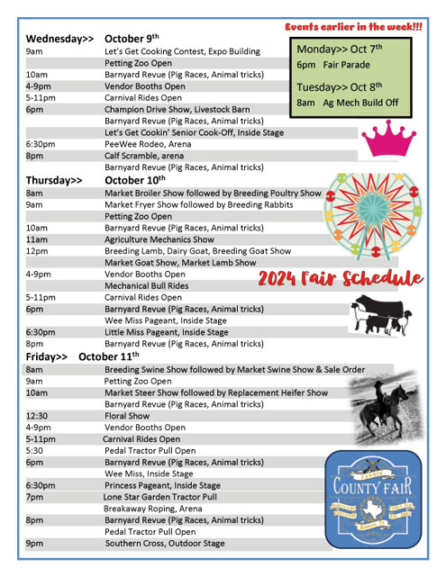 The fair will run from Wednesday, October 9 through Saturday, October 12.